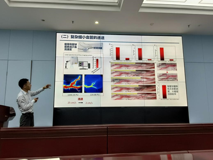王奔副教授在报告中指出,医用微型机器人正以毫米至微纳米级尺寸突破传统医疗工具的物理限制,其核心优势在于“无创性与精准性”。通过仿生设计,微型机器人可深入胆管、毛细血管等传统器械无法触及的狭小腔道,显著降低手术创伤。他系统剖析了当前在材料设计、驱动控制及体内应用方面的三大瓶颈,重点针对消化系统、血液循环系统及脊液循环系统,开展了微型机器人体内递送的系统性研究,突破其运动行为的尺寸限制,结合传统介入工具解决长距离递送,成功实现“最后一厘米”精准医疗。王奔副教授与我院师生就微型机器人体内长期安全性、规模化生产瓶颈等问题展开讨论,为大家呈现了医用微型机器人从基础研究到应用的完整图景,进一步激发了研究生跨学科创新研究的热情。