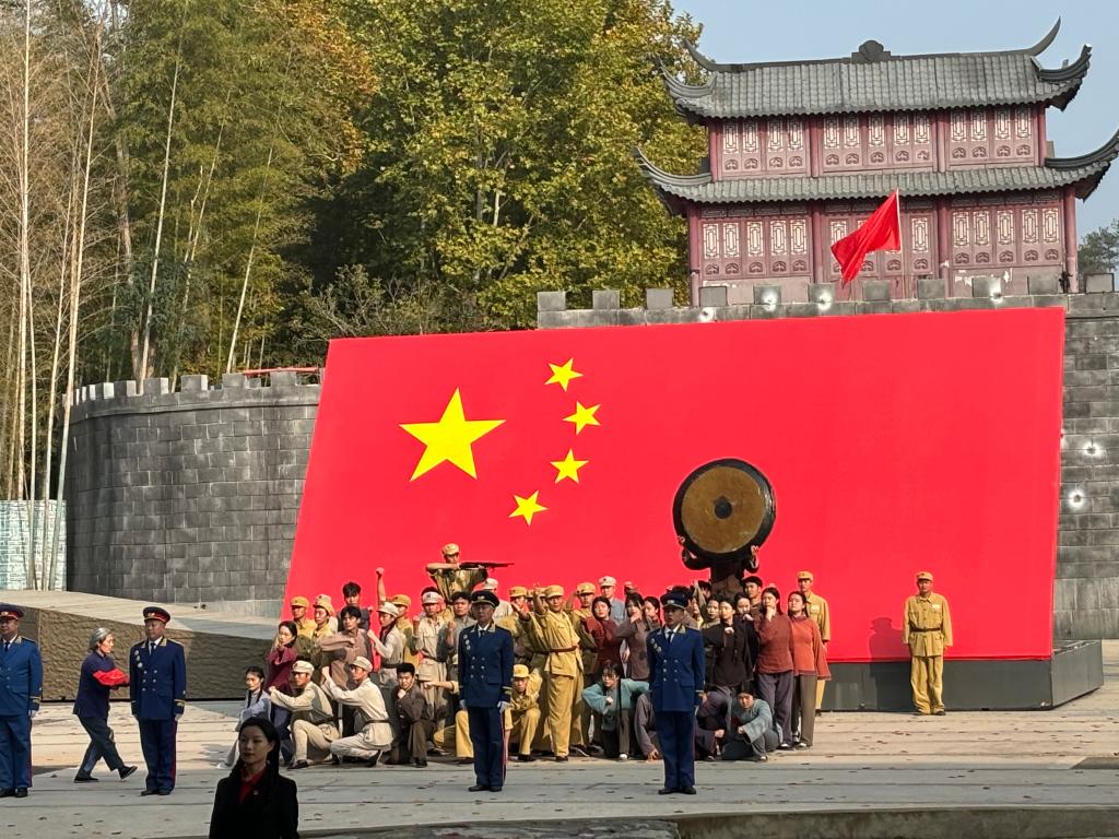 党员们在将军红基地观看了红色教育表演《红安永远红》。这场表演时长60分钟,生动诠释了共产党红色基因的强大根基来自于人民,以及对党忠诚、矢志不渝、九死无悔和面对刀山火海勇敢前行的红色基因内涵。