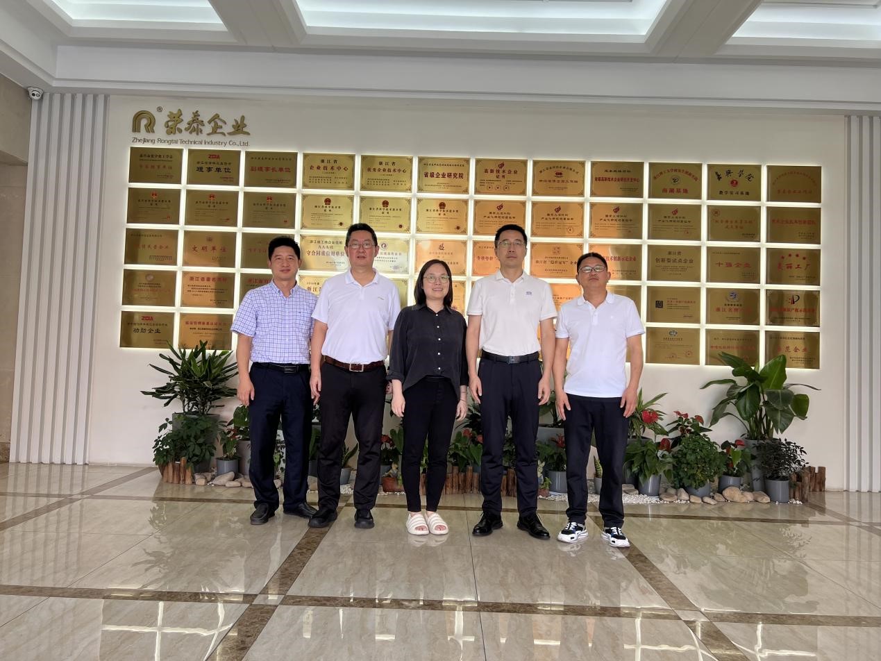 在浙江荣泰科技企业有限公司,公司董事长葛凡热情接待并带领大家参观生产车间,介绍了公司发展历程与核心技术相关情况。座谈会上,围绕材料领域等前沿技术问题,学院与公司双方开展了深入的交流探讨。