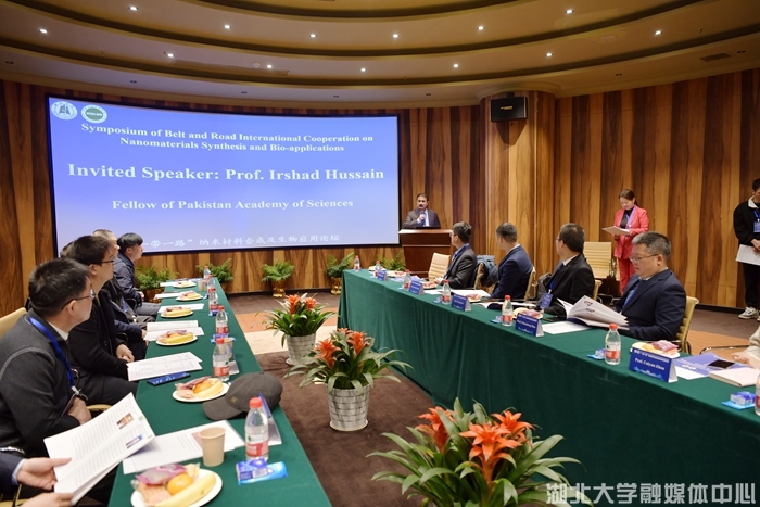 11月12日到13日,由湖北大学和中国生物材料学会生物医用高分子材料分会共同主办的“一带一路”纳米材料合成及生物应用论坛在汉举行。巴基斯坦科学院院士、拉合尔管理科学大学Irshad Hussain教授、巴基斯坦在华青年学者和留学生代表、国内高校和研究所的专家学者及学生代表参会。论坛围绕纳米材料的合成、纳米材料在生物医学及相关交叉领域的应用进行了深层次的学术交流与探讨。