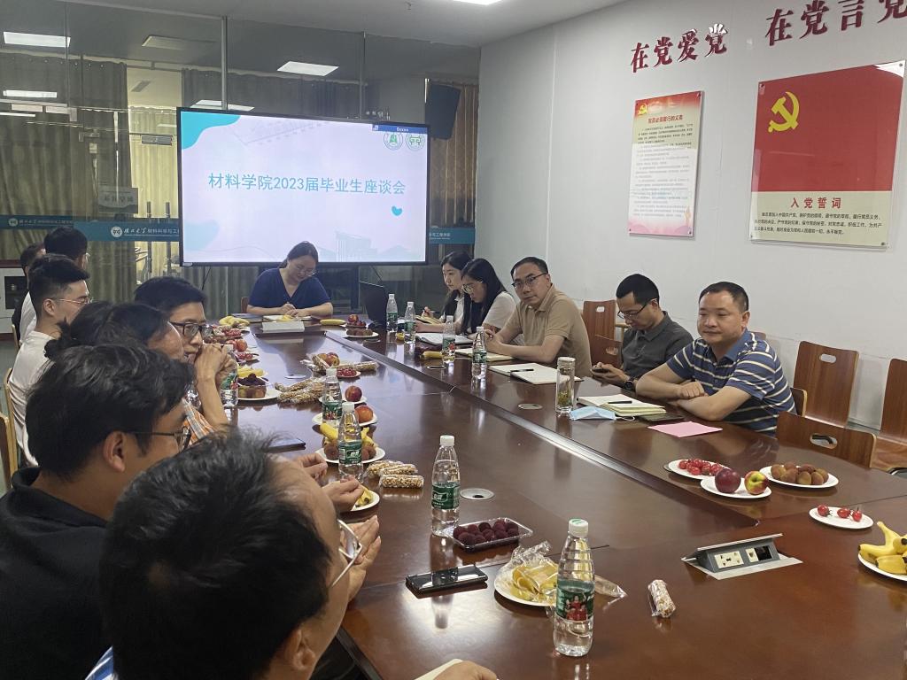 为进一步落实立德树人根本任务,不断强化学院学生管理工作的针对性与实效性,6月15日下午,材料科学与工程学院召开2023届毕业生座谈会。院党委书记宋韧,院长郭志光,党委副书记鲁力格格,副院长夏晓红、梅涛,毕业班班主任、导师代表以及本硕博毕业生代表们参与座谈,畅谈青春成长,共绘未来蓝图。