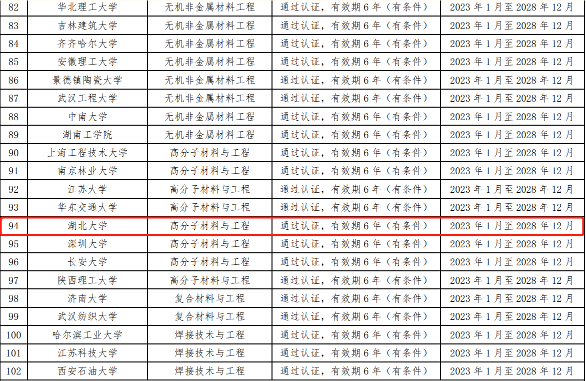 近日,中国工程教育专业认证协会、教育部教育质量评估中心发布通过工程教育认证专业名单,我院高分子材料与工程专业通过认证,有效期6年(2023年1月至2028年12月)。