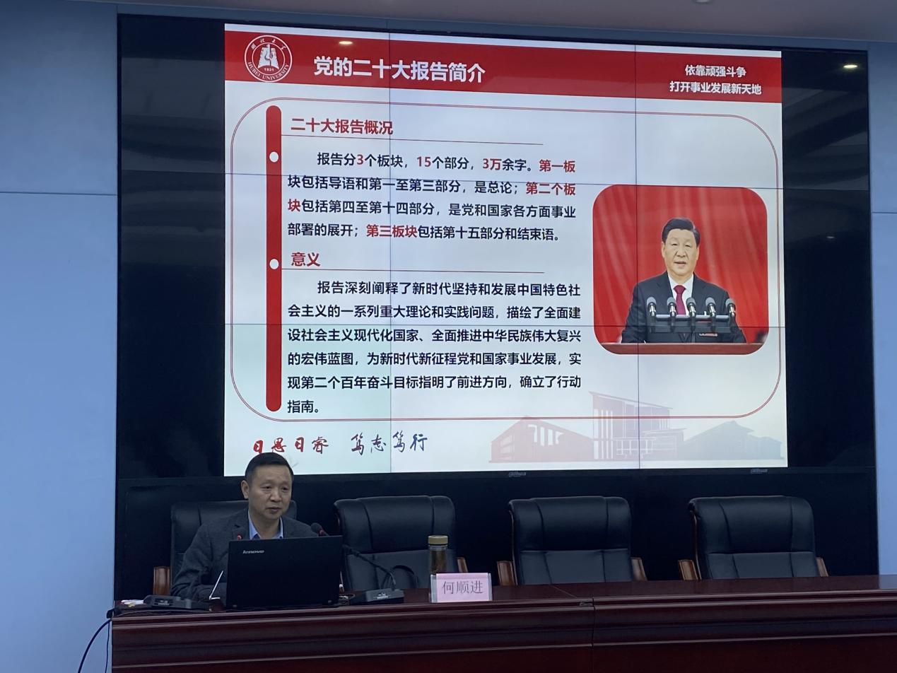 在宣讲中,何顺进以“斗争”在二十大报告中的使用为切入口,围绕新时代强调“斗争”的必要性、新时代新征程如何增强斗争本领做了深入浅出的报告。他指出,“斗争”关系新时代“国家安全”,关系“自我革命”和“党员干部修养”。历史经验昭示,党的百年历史就是一部斗争史,面对国内国际两个大局发展变化,我们要坚持国家利益为重、国内政治优先,保持战略定力,发扬斗争精神,充分认识伟大斗争的长期性复杂性艰巨性,增强进行伟大斗争的信心和底气。他强调,作为新时代年轻干部,我们要廓清认识误区,树立正确斗争意识,坚持斗争方向和立场原则,把握斗争规律和艺术,全体教师要不断加强思想淬炼、政治历练、实践锻炼、专业训练,在复杂严峻的斗争中经风雨、见世面、壮筋骨、长才干,勇担重任,为实现中国式现代化贡献力量。