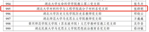 近日,教育部办公厅公布《关于全国高校“双带头人”教师党支部书记“强国行”专项行动团队名单的公示》,我院高分子材料系党支部成功入选。