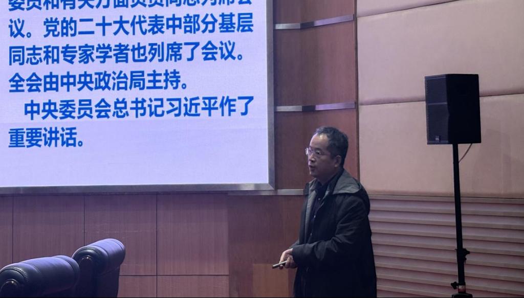 12月23日,学习贯彻党的二十届四中全会精神专题宣讲会在学校会议中心思齐厅举行。校党委常委、副校长李振担任主讲人。材料科学与工程学院等单位领导班子成员参会。