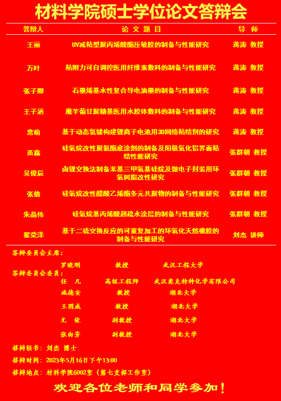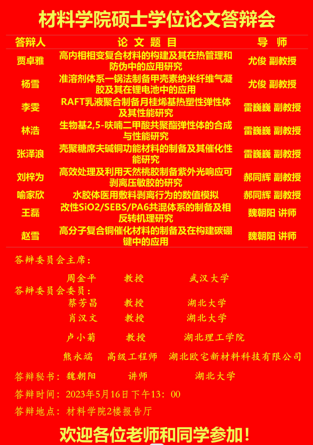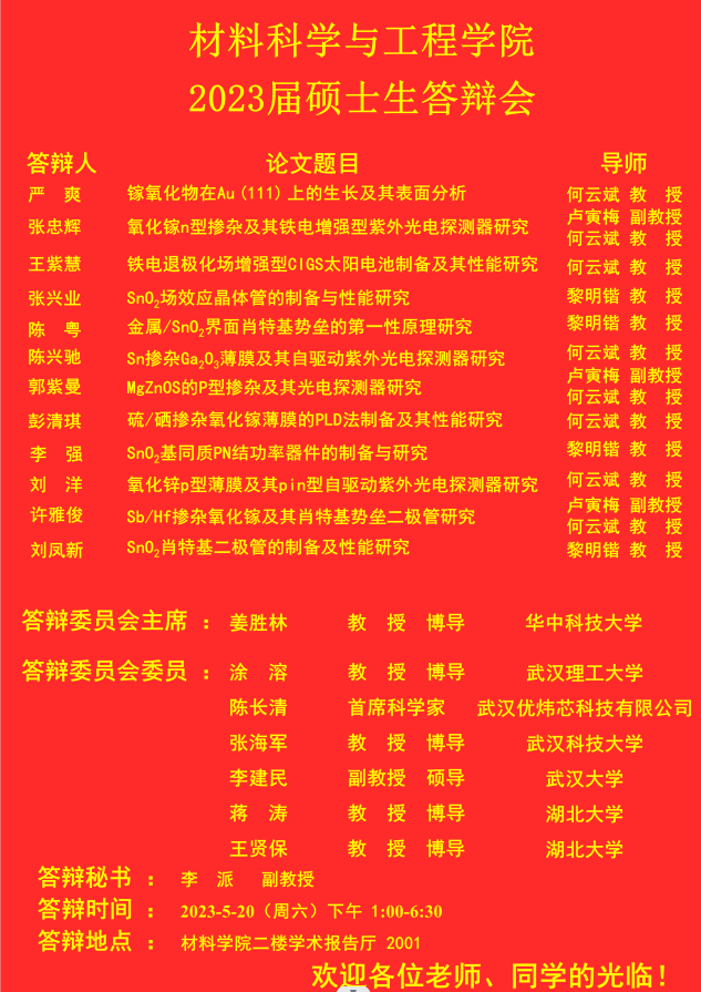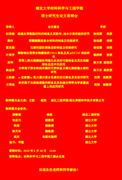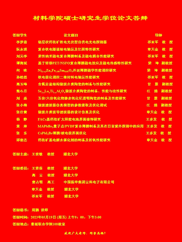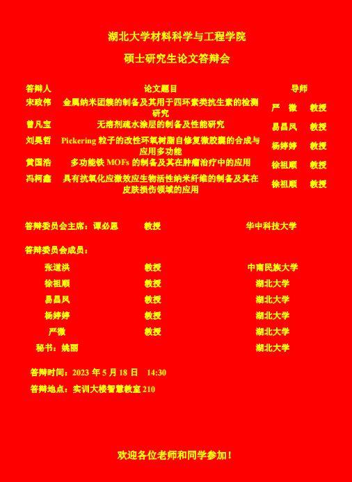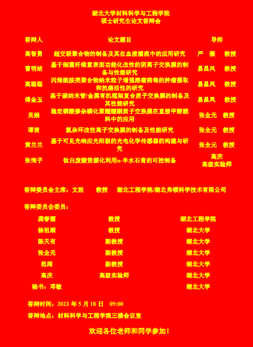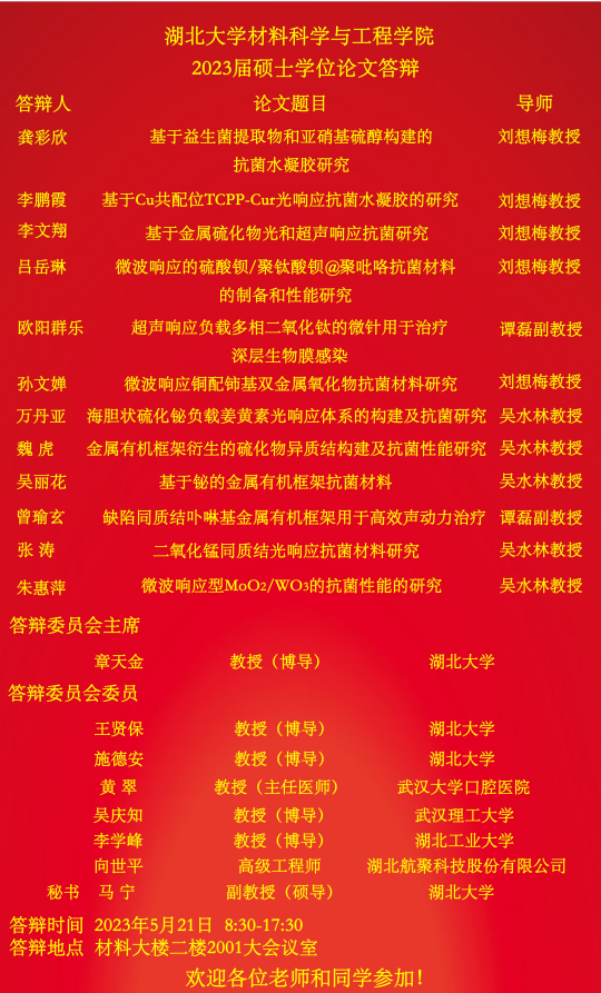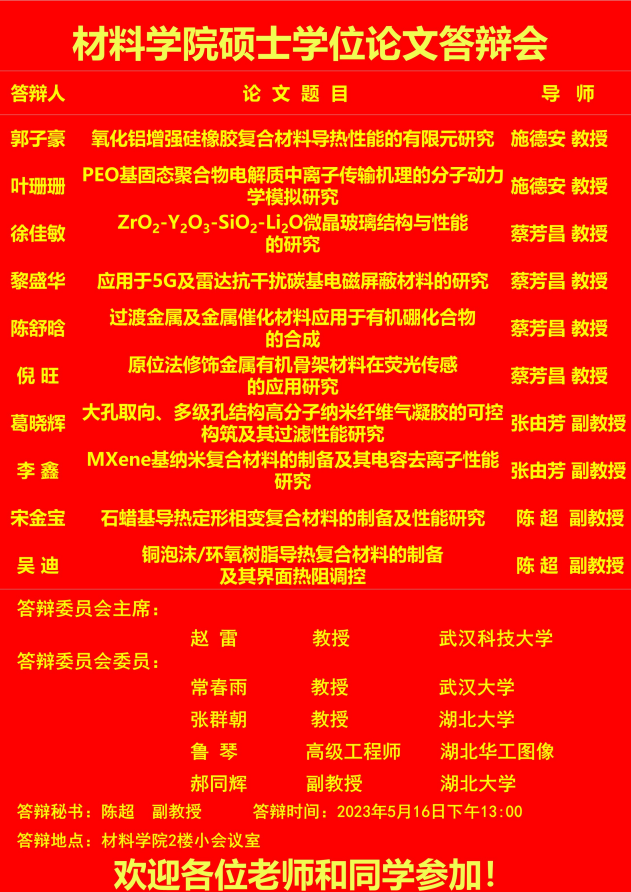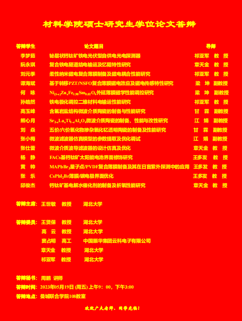 材料科学与工程学院2023年上半年答辩公告(二)