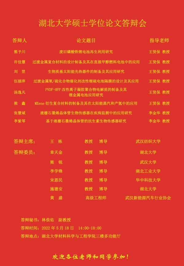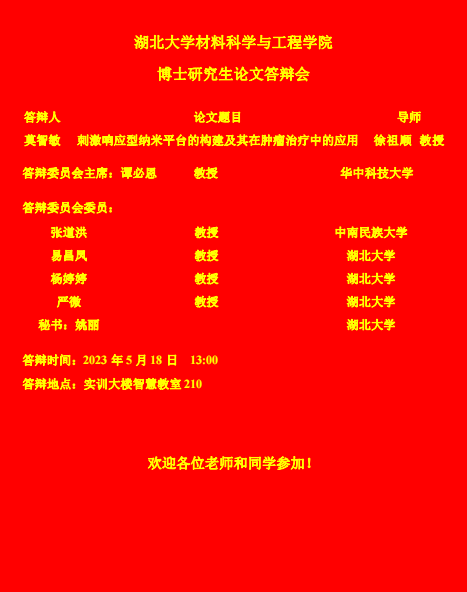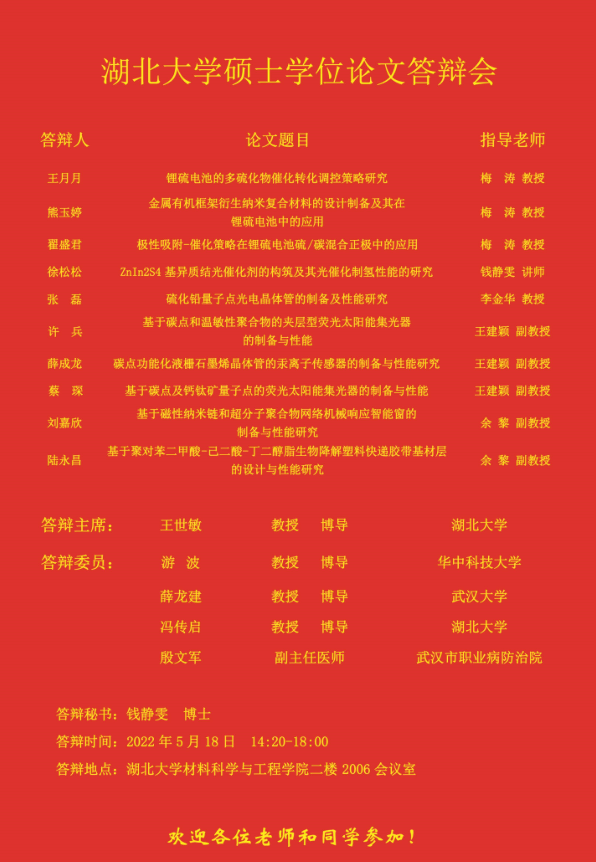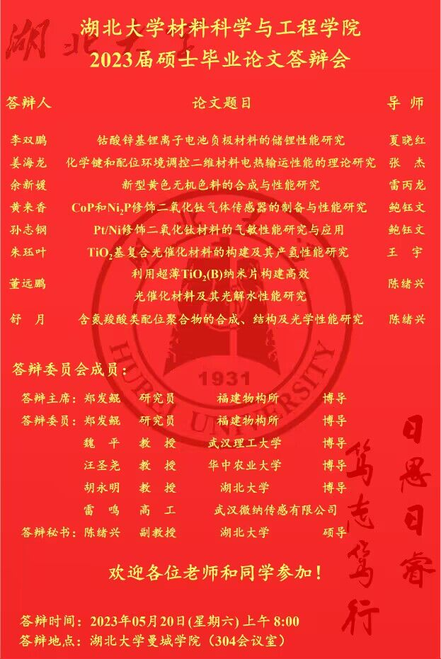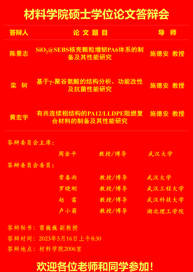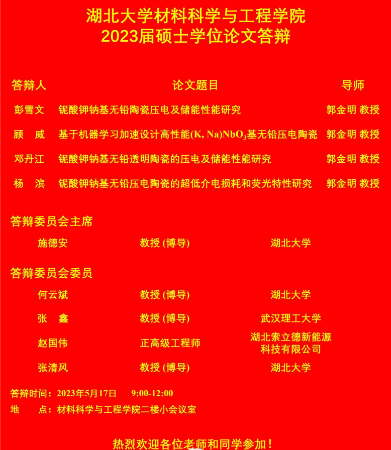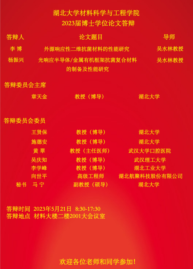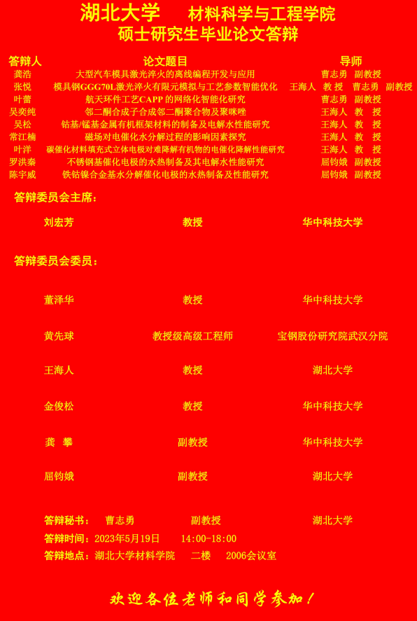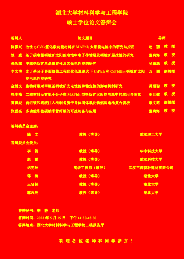 材料科学与工程学院2023年上半年答辩公告(二)