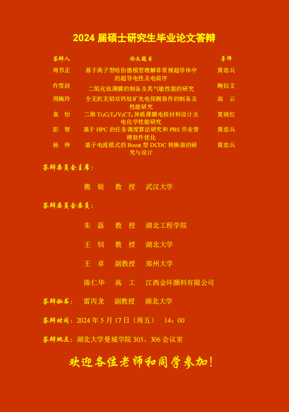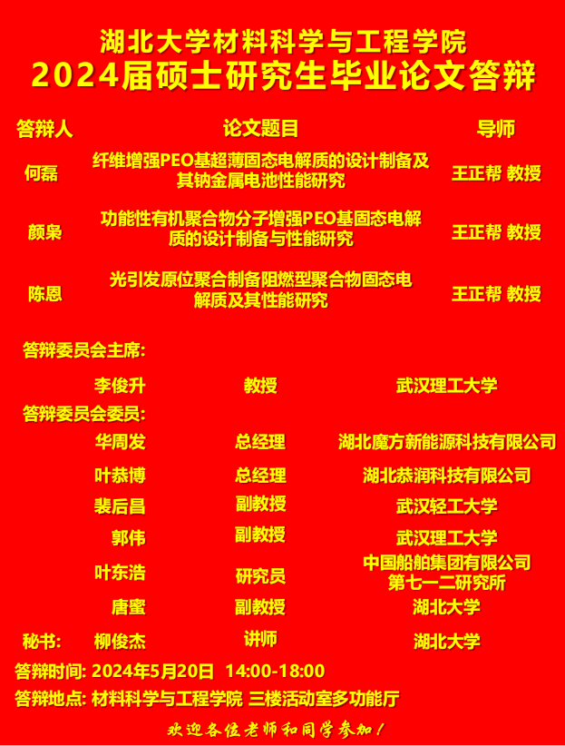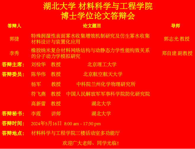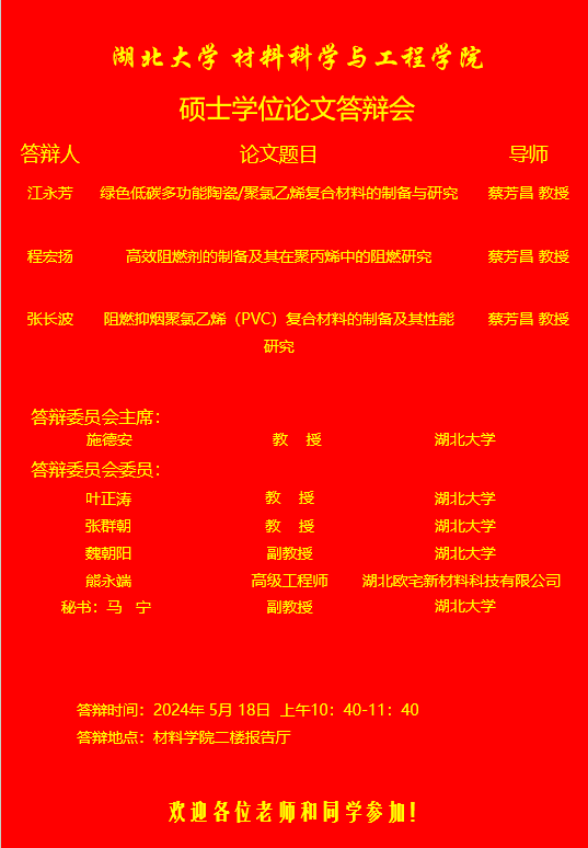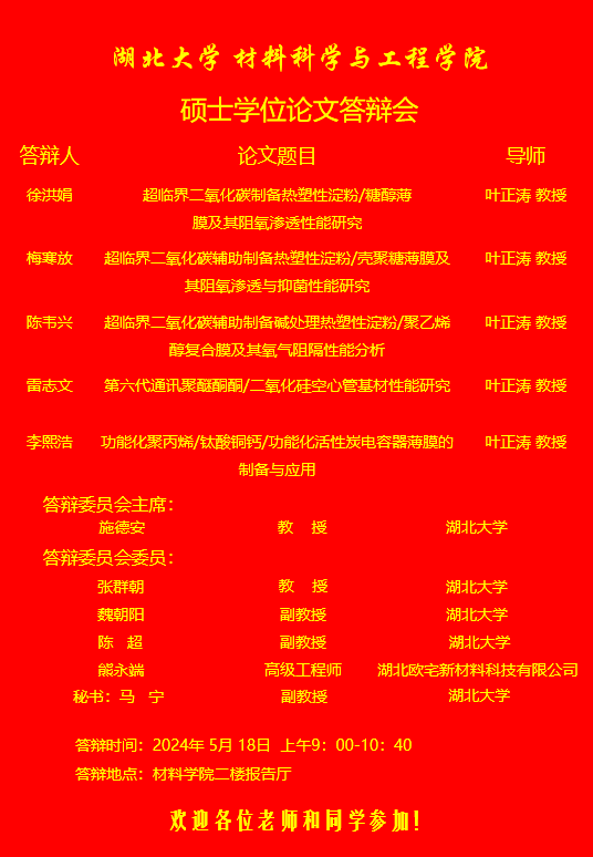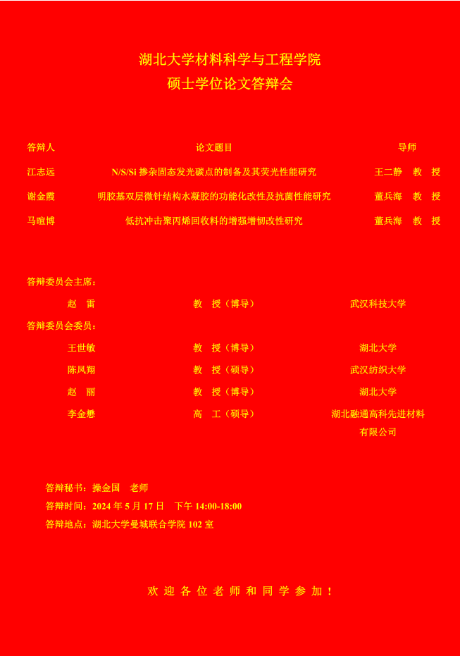 材料科学与工程学院2024年上半年答辩公告