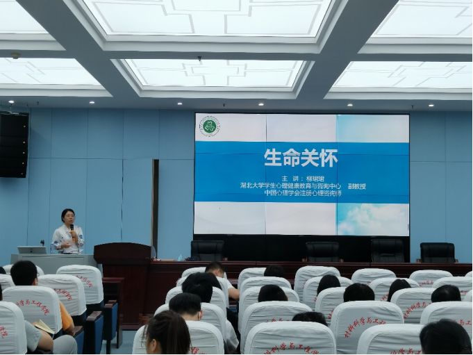 浓情五月天,健康阳光行。为帮助我院青年大学生正确认识自我、关注心理健康,营造良好的心理健康教育氛围,在“5·25”全国大学生心理健康日来临之际,我院特邀请湖北大学研究生工作部副部长、国家二级心理咨询师李明老师和湖北大学学生心理健康教育与咨询中心咨询师柳珺珺教授,为我院全体一年级研究生开展“大学生情绪管理”和“生命关怀”主题心理健康讲座。