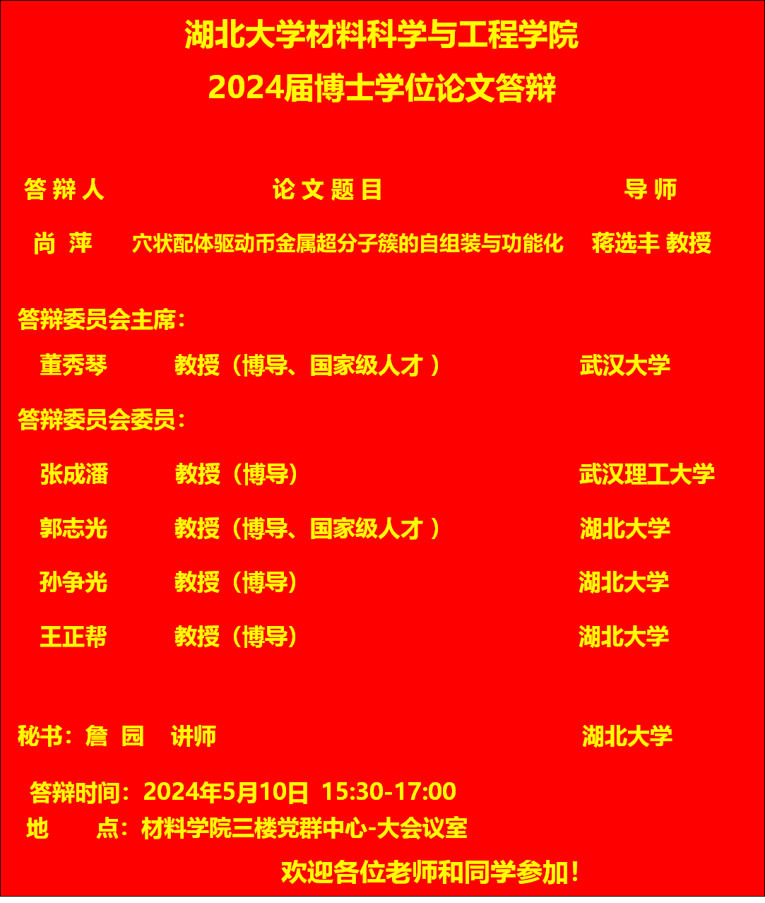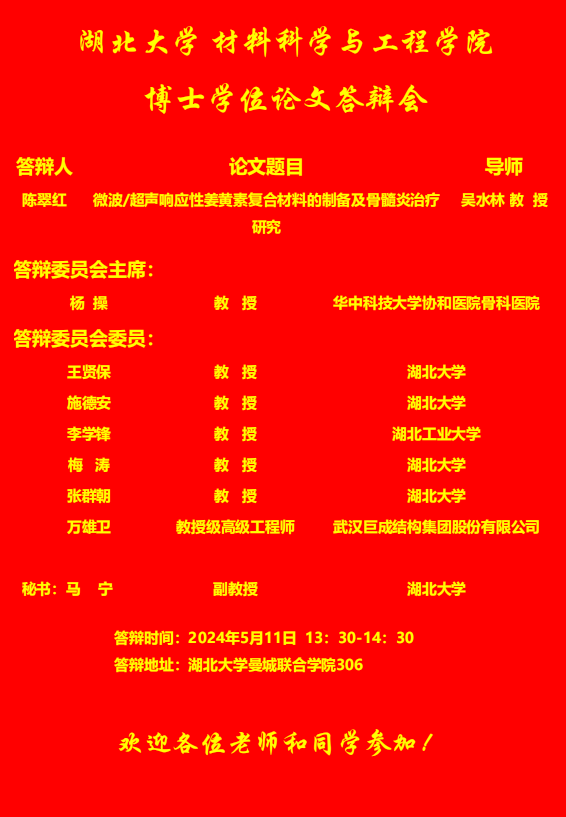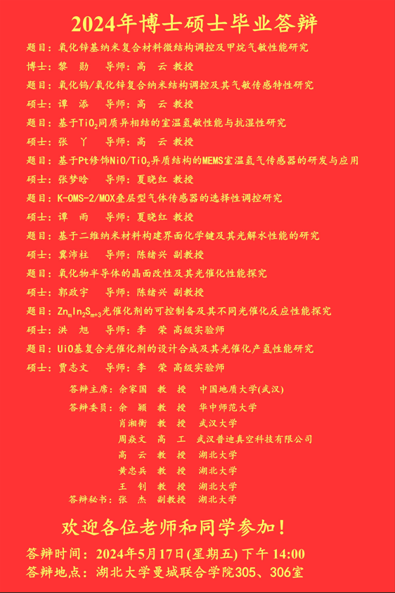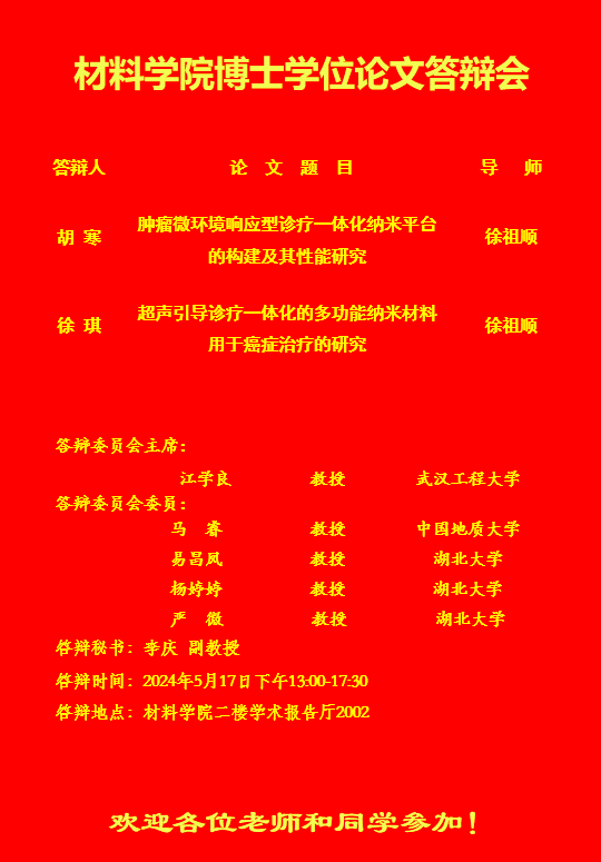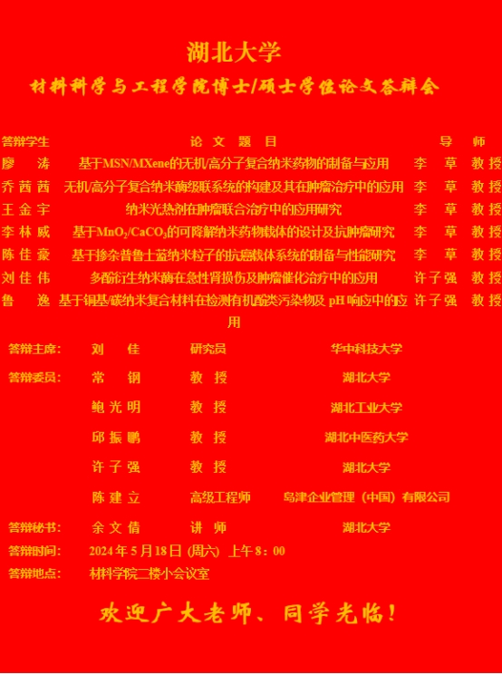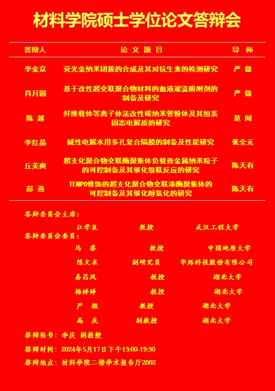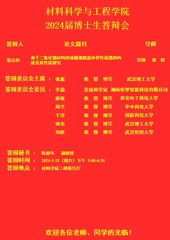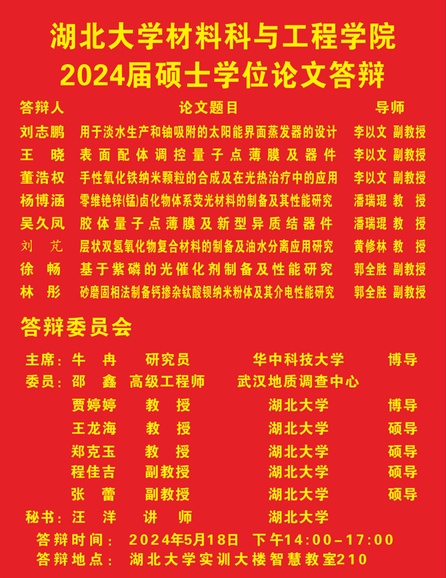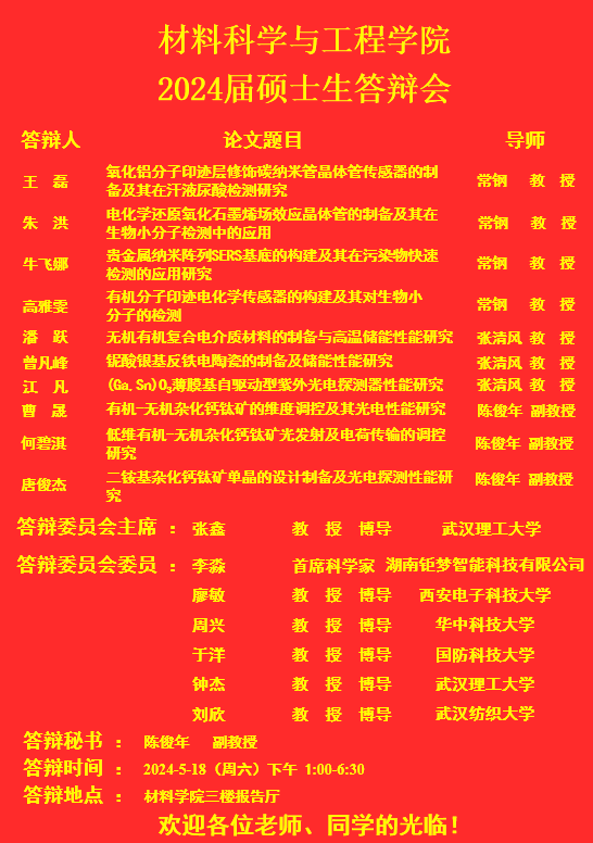 材料科学与工程学院2024年上半年答辩公告