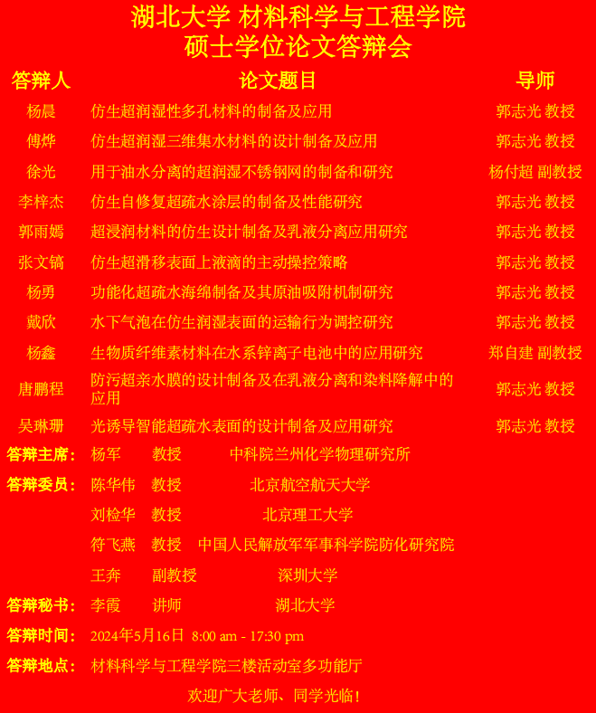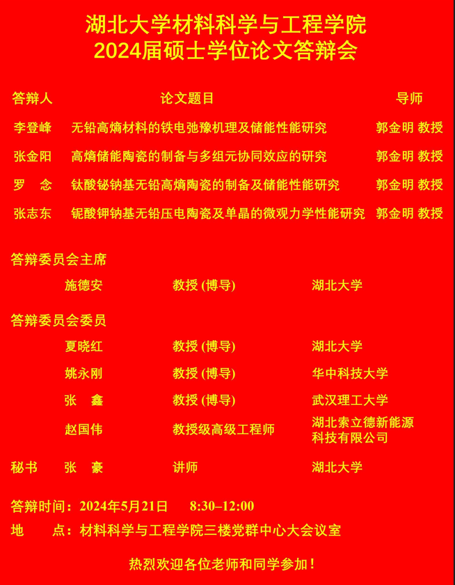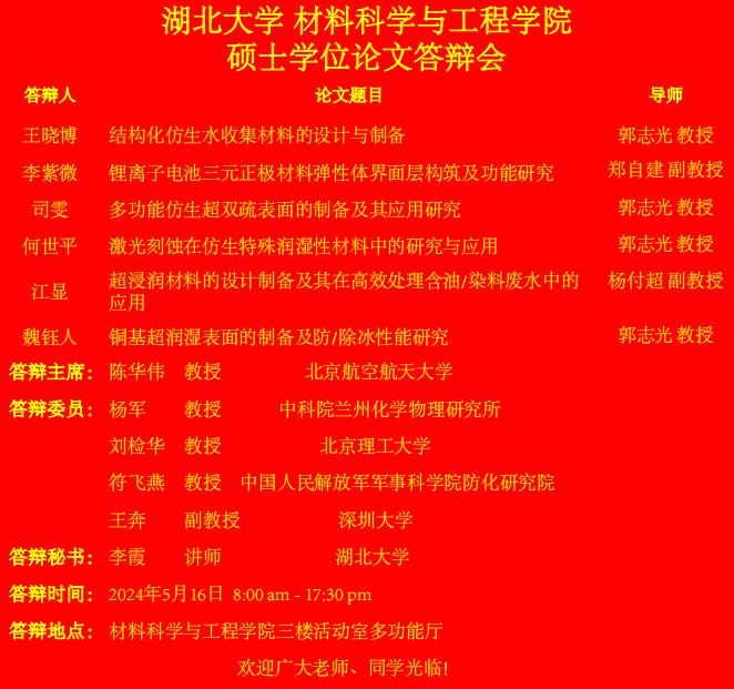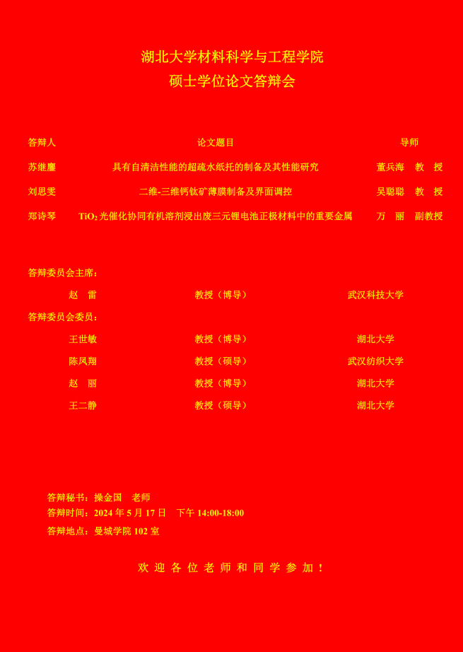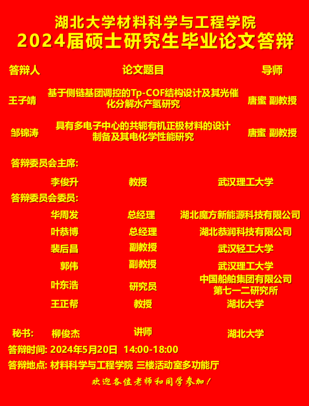 材料科学与工程学院2024年上半年答辩公告(二)