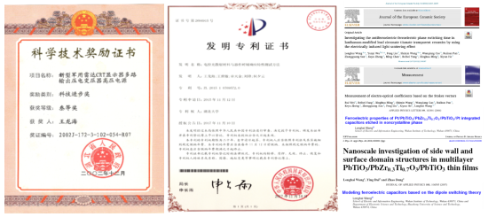 1、湖北省优秀博士论文奖,用于嵌入式铁电存储器的集成铁电电容研究, 湖北省人民政府学位委员会,湖北省教育厅,2007-12。