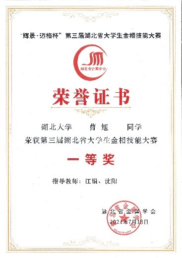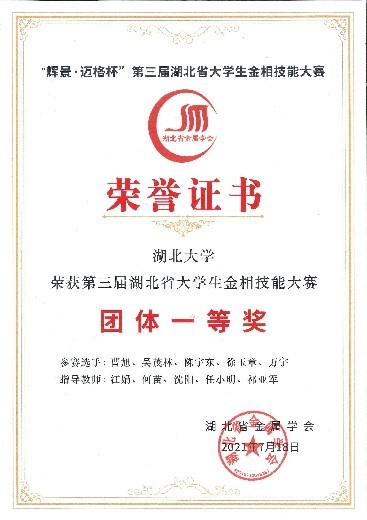 7月17日至18日,由湖北省金属学会和武汉理工大学联合主办的“辉景·迈格杯”第三届湖北省大学生金相技能大赛在武汉理工大学顺利举行。材料科学与工程学院5名学生组成的湖北大学代表队,在比赛中创造佳绩,获团体一等奖1项、个人一等奖2项、二等奖3项。