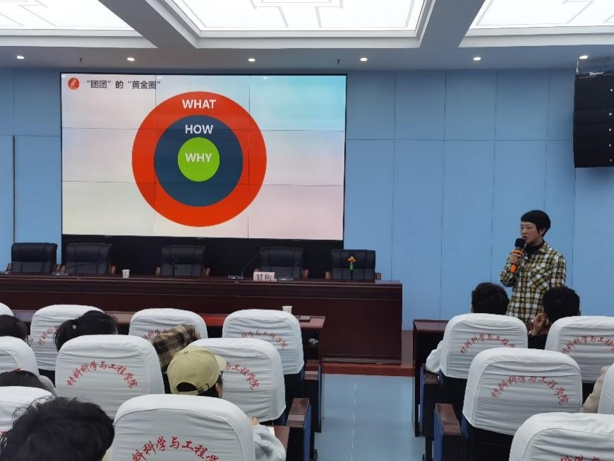 课上,甘书记以“团团”的“黄金圈”为题,从三个“H”(Why、What、How)导入,介绍了黄金圈的含义。