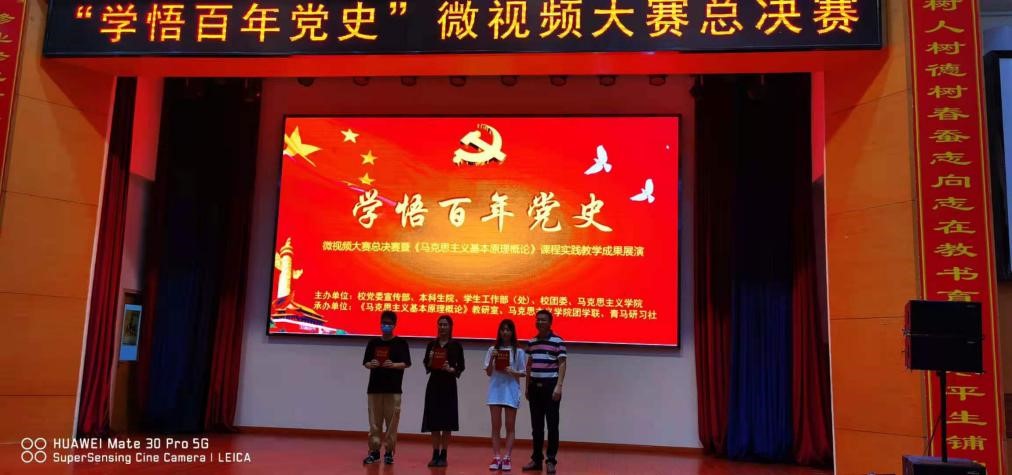 2021年5月27日下午,由湖北大学党委宣传部、本科生院、学工部、校团委和马克思主义学院联合主办,《马克思主义基本原理概论》课程组、马克思主义团学联、青年马克思主义研习社联合承办的“‘学悟百年党史’微视频大赛总决赛”在学校3号楼报告厅举行。湖北大学党委副书记侯勇、党委宣传部、学工部、校团委、马克思主义学院相关负责人出席活动并为获奖团队颁奖。