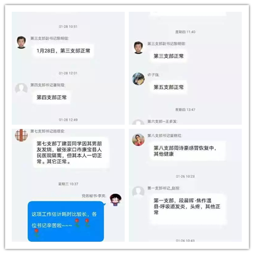 疫情防控期间,我院党务秘书研究生辅导员李岚协助各党支部书记按照学校部署立即开始报送研究生情况,着重关注研究生身体健康状况,密切追踪异常情况,做到有记载、有重点的筑牢疫情防控第一线。