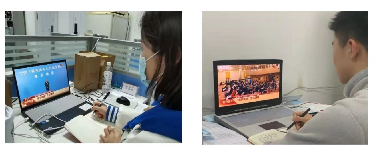 全国政协十三届五次会议和十三届全国人大五次会议分别于3月4日、5日在北京人民大会堂开幕。为进一步了解“两会”动态,深入学习“两会”精神,在严守疫情防控要求的前提下,学院组织师生收看收听广播、电视、报纸、网络及学习强国平台客户端等媒体播发(登载)的有关“两会”的各类报道,特别是收听收看“两会”开幕会和闭幕会、政府工作报告、政协工作报告、有关新闻发布会、记者招待会等重点内容。
