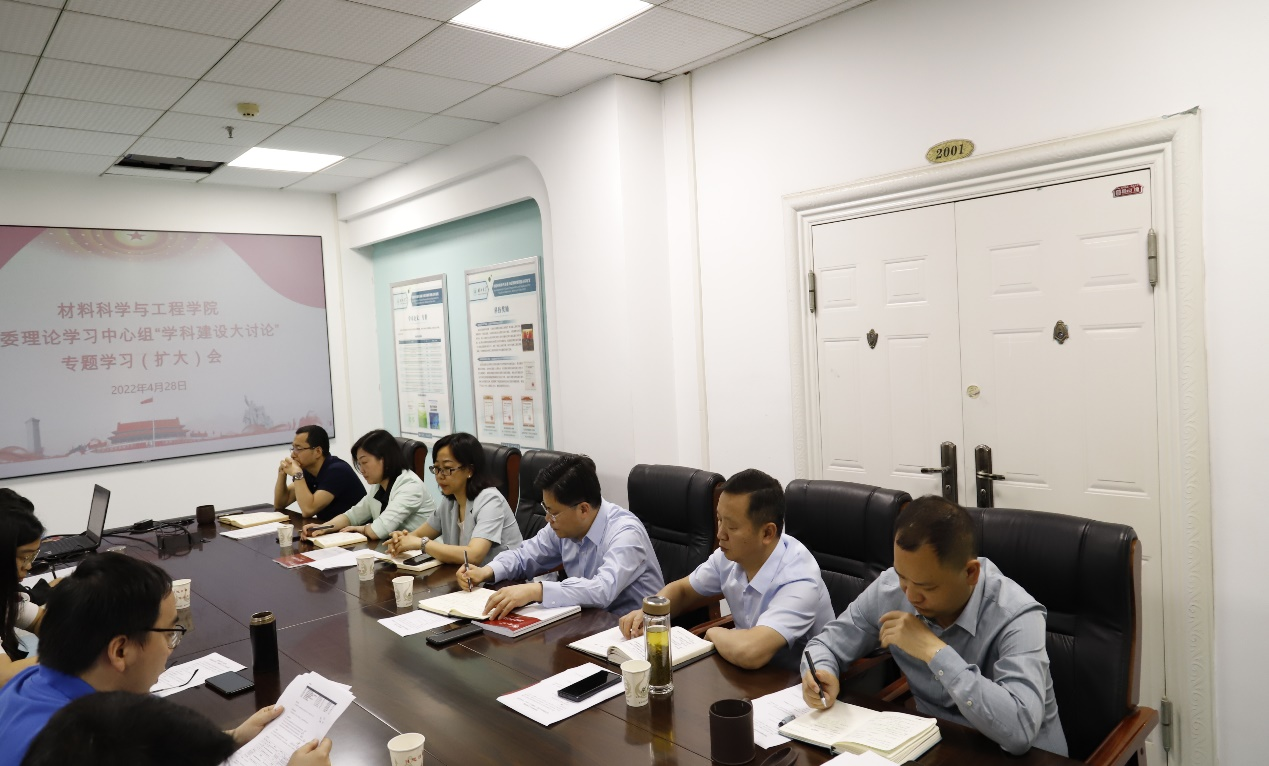 4月28日上午,材料科学与工程学院围绕“争当标杆、争创一流、走在前列”主题,开展党委理论学习中心组 “学科建设大讨论”专题学习。校党委副书记祝欣出席会议并讲话,党委宣传部常务副部长何顺进,人事处处长卢轶婷、人事处副处长王晓玲,以及学院班子成员和各党支部书记参加会议。院党委书记宋韧主持会议。