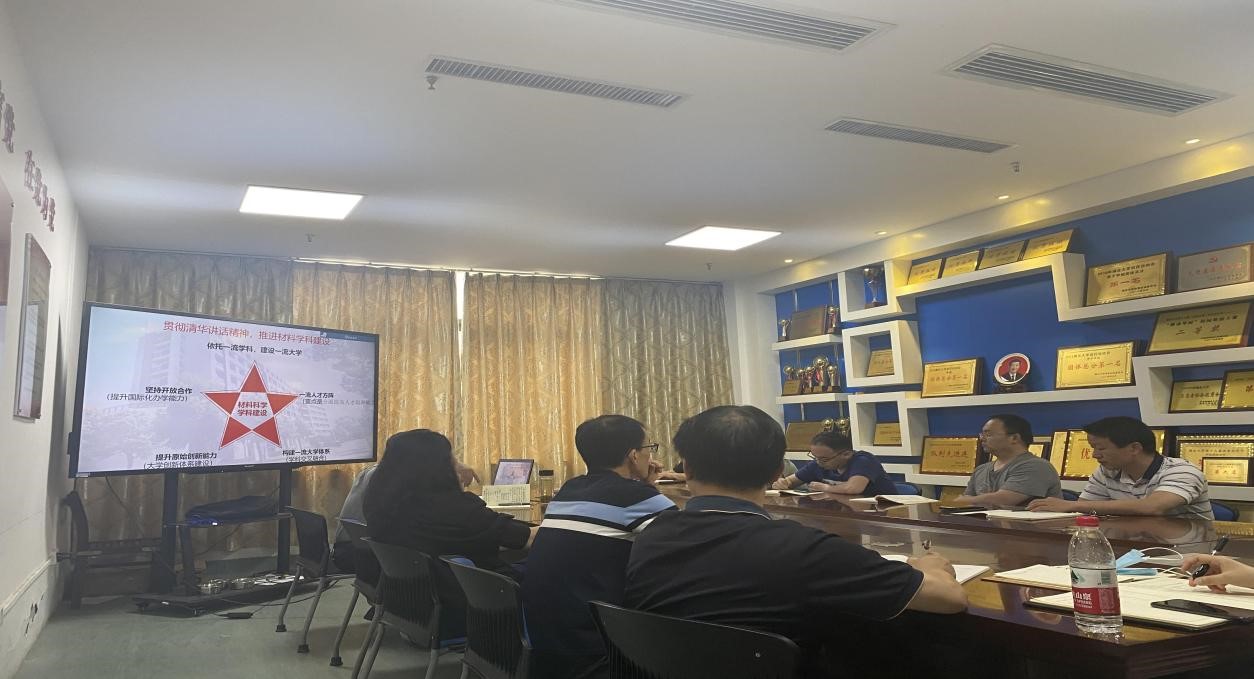何书记在领学讲话重点的同时,从依托一流学科、一流人才方阵、学科交叉融合、提升原始创新能力以及国际化办学能力五个方面指出应如何贯彻清华讲话精神,与学院发展实际相结合,推进材料学科建设。又结合周诗远、李明鑫等优秀学子的例子,带领大家思考应如何培养精英学生,重点聚焦人才培养。此外,他还指出构建一流大学体系要提倡习近平总书记提出的注重学科交叉融合。材料学院应从小范围出发,注重各个课题组之间的交叉融合,要多沟通多交流。