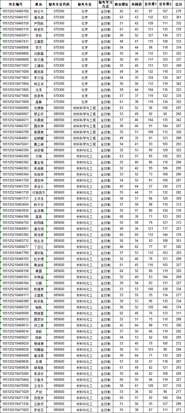 2025年湖北大学材料科学与工程学院硕士研究生招生考试一志愿复试名单
